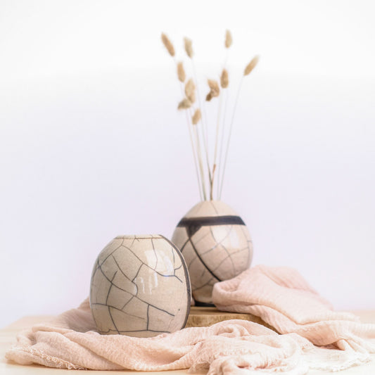 Raku Biege Egg Vase