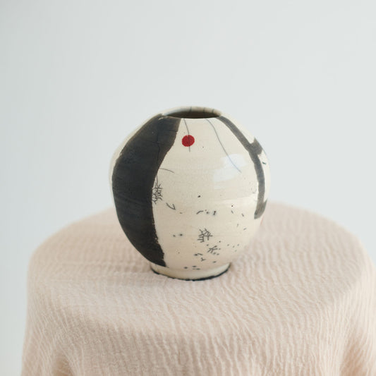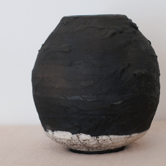 Raku Black and Cream Vase